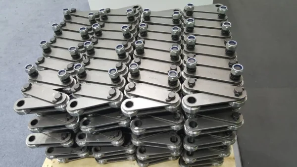 - Attachment Conveyor Chain – โซ่ที่มีอุปกรณ์เสริม เช่น แผ่นรองรับสินค้า หรือข้อต่อพิเศษ